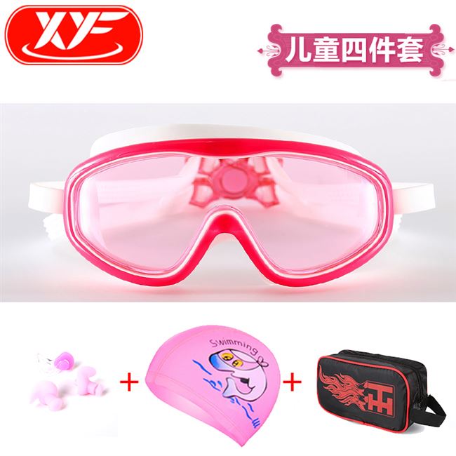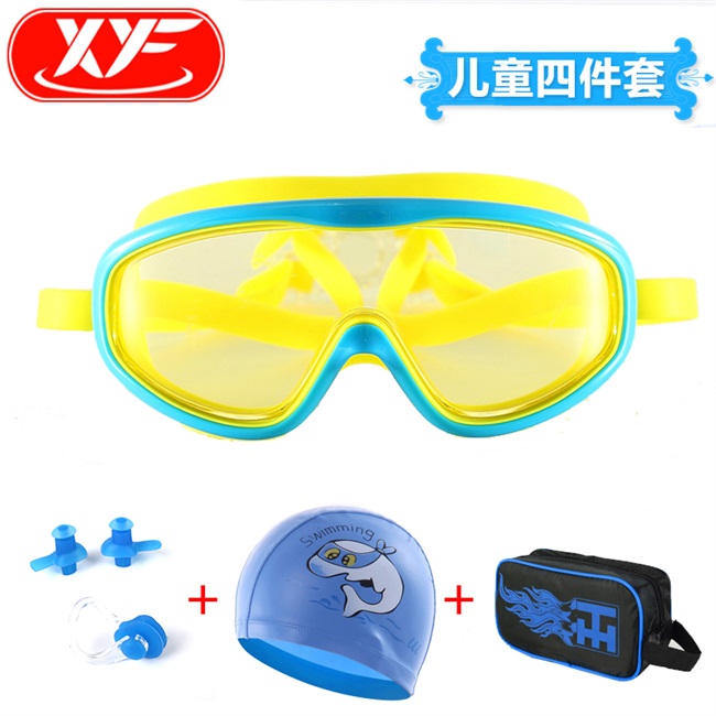 Set HD Kính bảo hộ trẻ em không thấm nước Bé trai Khung lớn Chống sương mù Bé gái Kính bơi Kính bảo hộ Mũ bơi Thiết bị bơi - Goggles