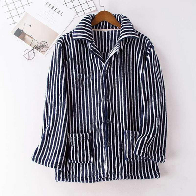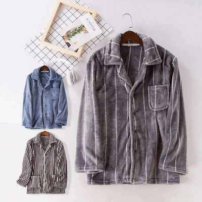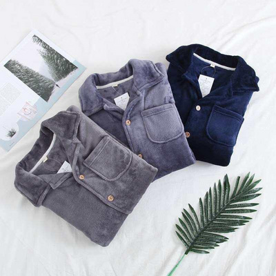 Shan Shan nhung pyjama đơn áo khoác nam đơn giản áo khoác nam mùa thu và mùa đông flannel dày ấm áp mùa đông dài tay kích thước lớn - Pyjama