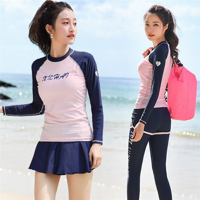 Sinh viên dài tay Hàn Quốc 2020 váy áo tắm xẻ tà mới phong cách bảo thủ cô gái ngọt ngào dễ thương áo tắm gió - Bộ đồ bơi hai mảnh