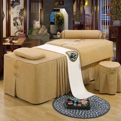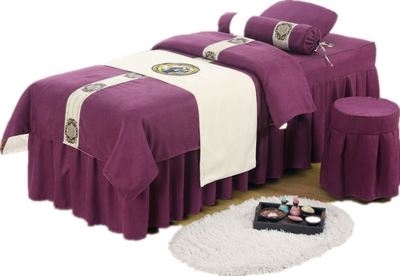 Tấm trải giường màu hồng lưới bông ngực bốn mảnh đơn giản y tế nhẹ bông trong gió màu hồng y tế thẩm mỹ viện làm đẹp giường trải giường - Trang bị tấm