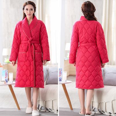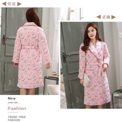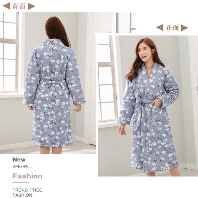 Tất cả phụ nữ 100% cotton áo choàng mã clip phong cách mùa thu và mùa đông dày tắm áo choàng tắm bông tinh khiết áo choàng ngủ bông dài tay phần dài của nam giới - Night Robe