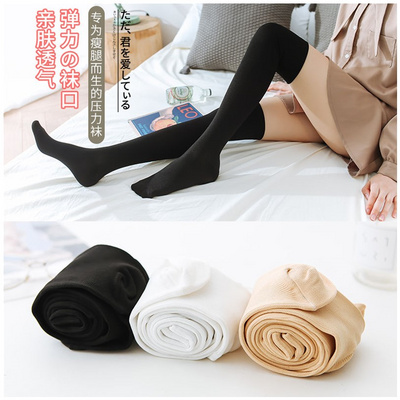 Tất dài trên đầu gối phụ nữ vớ bếp ống áp lực mạnh mẽ siêu bó vào mùa xuân và mùa thu màu đen Nhật Bản ống dài ống jk vớ ống cao tất thủy triều vớ - Vớ giảm béo