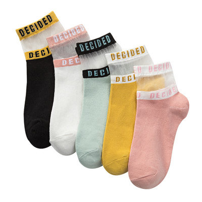 Tất nữ vớ nông miệng mỏng mùa xuân và mùa hè vớ thủy tinh pha lê bông trong ống vớ thuyền trong thủy triều lưới màu đỏ - Vớ bông