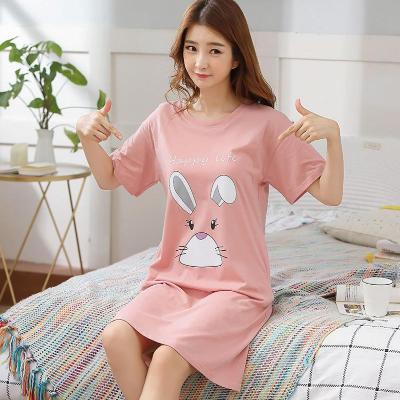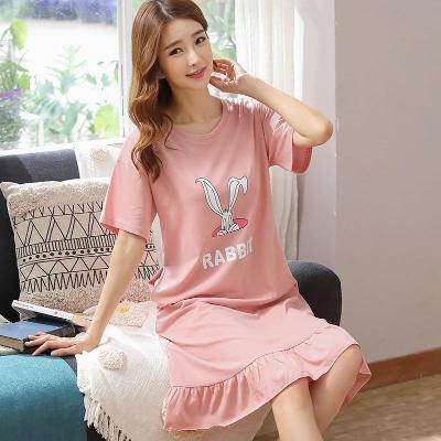 Thành thị vẻ đẹp gợi cảm béo mm ngắn tay đồ ngủ nữ mùa hè cotton rộng rãi phong cách hàn quốc mùa hè đồ ngủ cộng với chất béo để tăng. - Đêm đầm