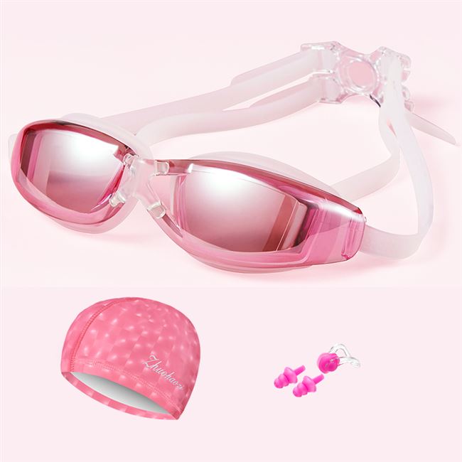 Thiết bị bơi HD chống thấm nước và chống sương mù Kính mạ điện unisex với nút tai và mũ bơi kẹp mũi để bơi - Goggles