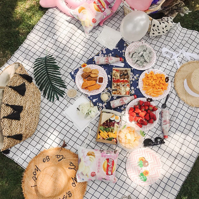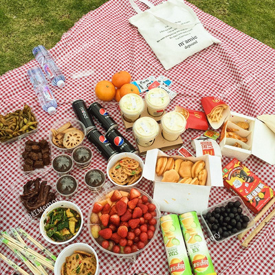 Thịt nướng bên bờ biển xanh thảm mat chống ẩm mat bình dị hộ gia đình ins gió nhiều người thuận tiện màu đỏ trắng vải ca rô - Thảm chống ẩm / Mat / Gối