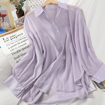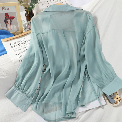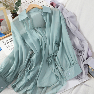 Thời trang áo ren chia nhỏ tất cả phù hợp với áo voan thoải mái nữ phiên bản Hàn Quốc của áo sơ mi chống nắng màu áo liền thân - Áo sơ mi chiffon ren