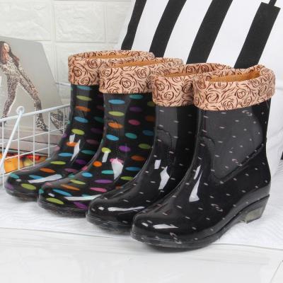 Thời trang mùa hè Hàn Quốc giày đi mưa phụ nữ ống cao không trơn trượt giày cao su chống thấm nước cộng với nhung nước giày overshoes người lớn ủng nước phụ nữ - Rainshoes