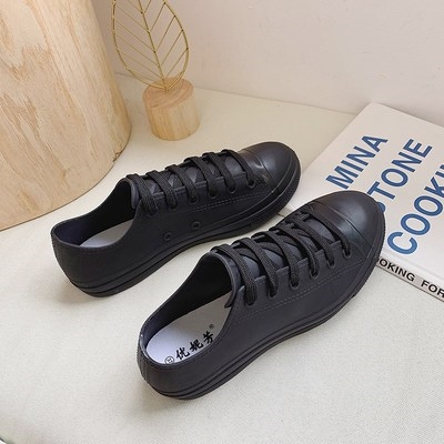 Thời trang sinh viên giày đi mưa nữ ống ngắn mùa xuân và mùa thu giày đi mưa dễ thương không thấm nước giày trắng không trơn trượt phẳng bình thường giày nước giày cao su - Rainshoes