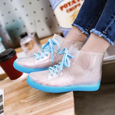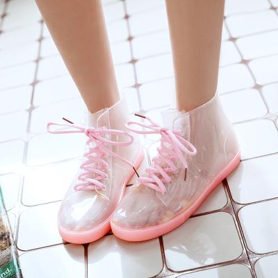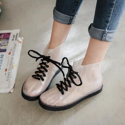 Thời trang trong suốt ủng đi mưa sinh viên phong cách hàn quốc ren-up ống ngắn không thấm nước giày nữ ấm áp và nhung nhựa dẻo chống trượt giày đi mưa thạch - Rainshoes