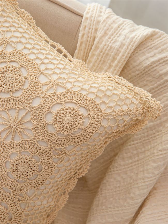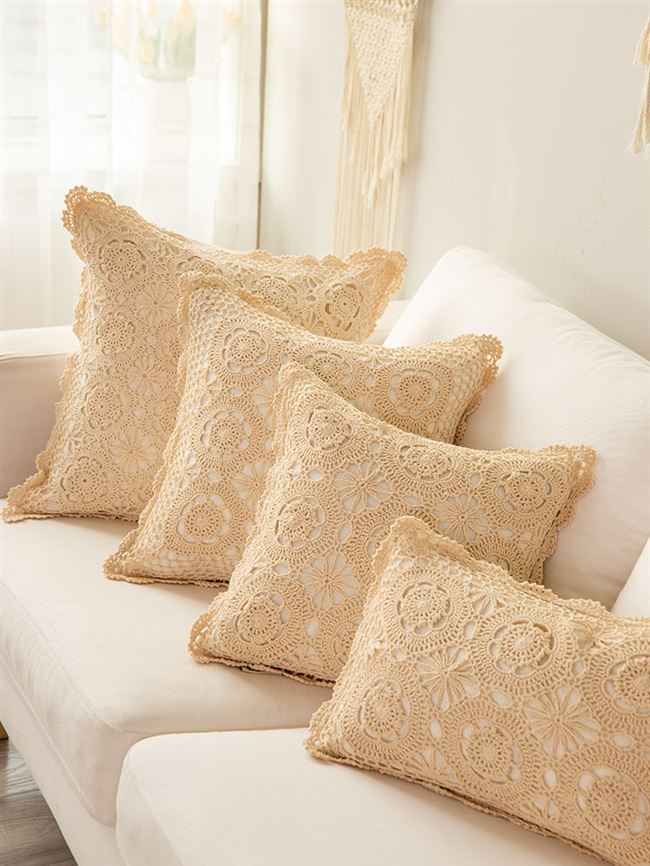 Thủ công crochet crochet sợi bông dệt phòng khách sofa gối đệm màu be cổ điển ren đệm rỗng áo gối - Trở lại đệm / Bolsters