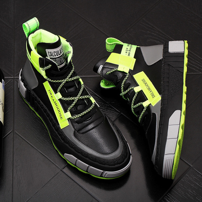 Thương hiệu thời trang giày nam xu hướng giày cao cổ hoang dã giày cao bồi nam Zhongbang đế dày bên trong giày ống ngắn thanh niên Giày Martin - Giay cao