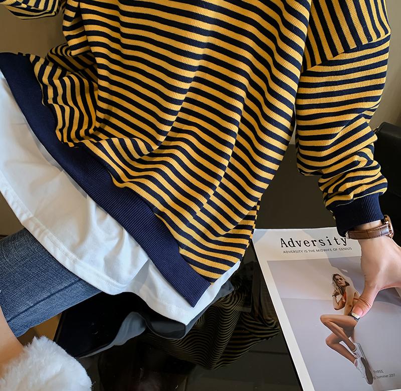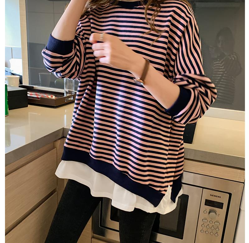. Tide thương hiệu áo len sọc nữ mùa thu mỏng 2020 mới lỏng lẻo nữ lười gió giả hai áo khoác giản dị - Áo len