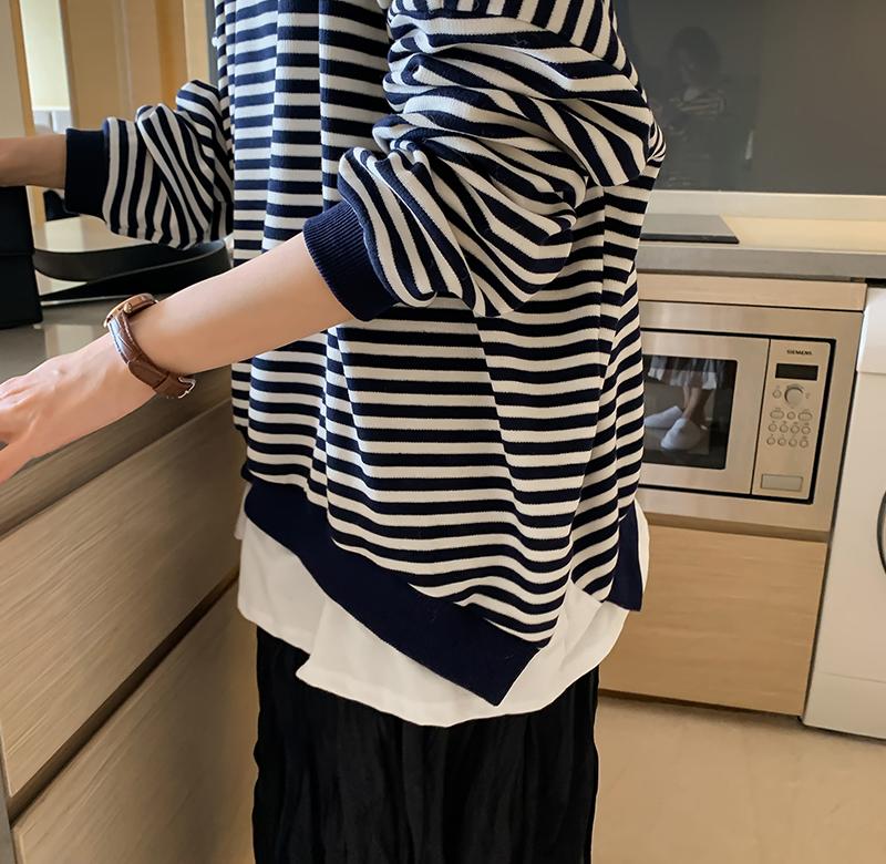 . Tide thương hiệu áo len sọc nữ mùa thu mỏng 2020 mới lỏng lẻo nữ lười gió giả hai áo khoác giản dị - Áo len