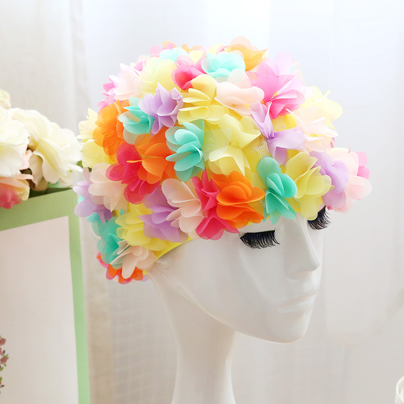 Tóc dài, cánh hoa dễ thương ba chiều siêu lớn, siêu đàn hồi, siêu nhẹ và có lót mũ bơi nữ không đầu - Mũ bơi