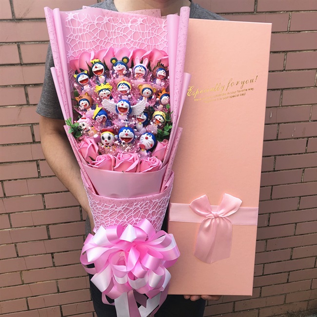 Trái tim nữ tính Quà tặng sinh nhật cho bạn gái Búp bê hoạt hình Bó hoa màu xanh Bó hoa béo làm bằng tay Ngày lễ tình nhân của mẹ - Hoa hoạt hình / Hoa sô cô la