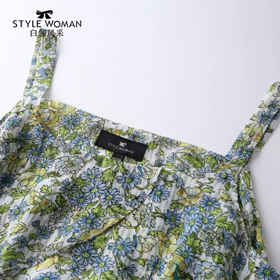 Trắng Ling phong cách voan in váy nữ váy dây treo eo cao váy dài thời trang đi nghỉ mát váy đi biển - Váy eo cao