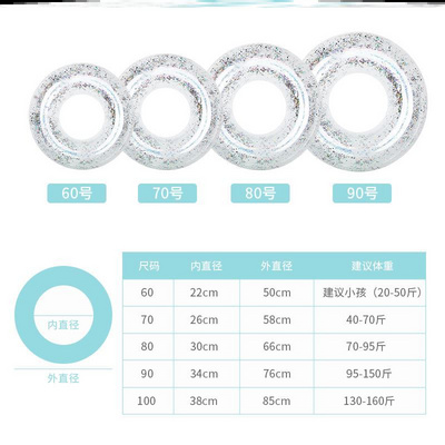 Trẻ mới biết đi di động tạo tác bể bơi rơi nước cậu bé học sinh bơm hơi nước vui vẻ vòng bơi 14 tuổi trong suốt sequins - Cao su nổi