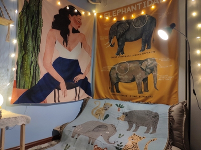 Treo vải gió lớn trắng lưới chắn tường vải thảm bố trí nền đỏ đầu giường trải giường ký túc xá cải tạo tường phòng ngủ vải triều - Tapestry