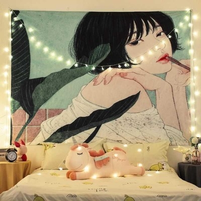 Treo vải ký túc xá cải tạo đầu giường trang trí thảm trang trí tường rèm vải phòng tân trang lớn bầu trời đầy sao xem lại net màu đỏ cùng một đoạn - Tapestry