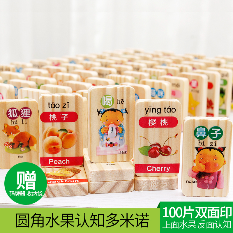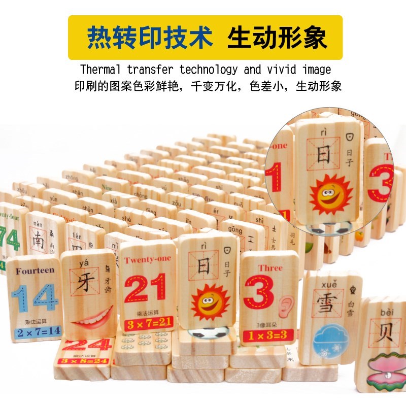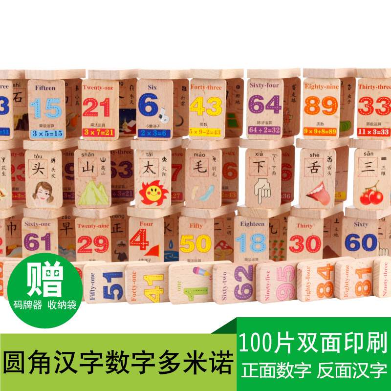 . Trí thông minh kỹ thuật số 100 Câu đố đồ chơi trẻ em bằng gỗ Trẻ em biết chữ Xây dựng khối Giáo dục sớm Nhận dạng khối gỗ - Khối xây dựng