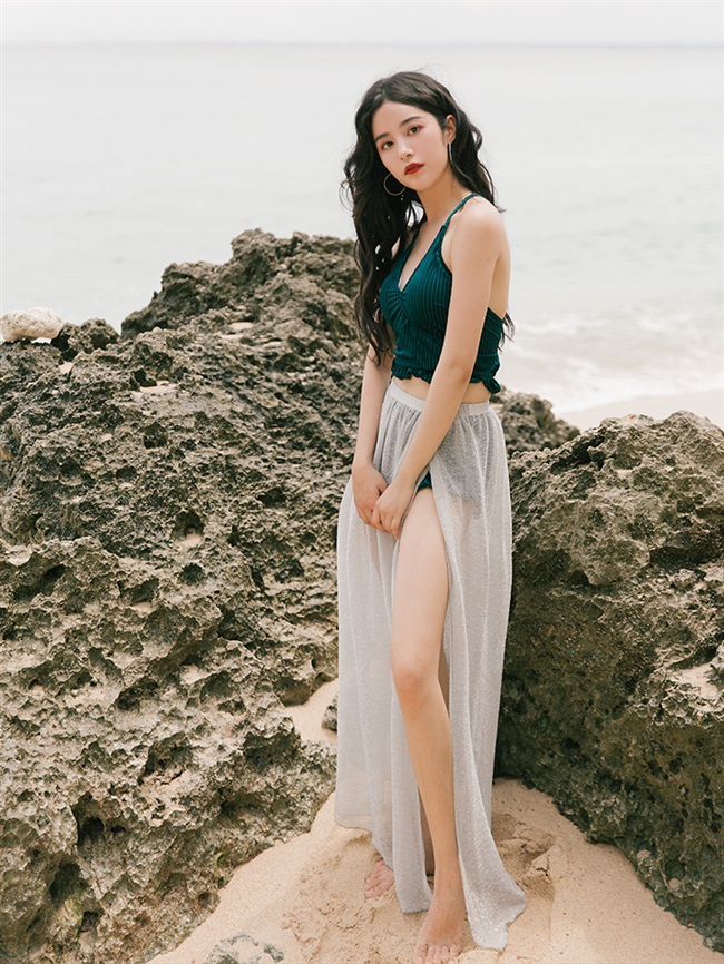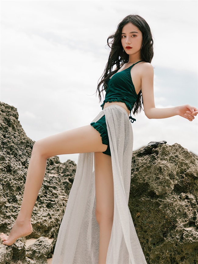 trong kỳ nghỉ chia cách mới phong cách retro mặc ngoài váy áo tắm nữ che eo cao bụng suối nóng ba mảnh cổ tích người hâm mộ - Bộ đồ bơi hai mảnh