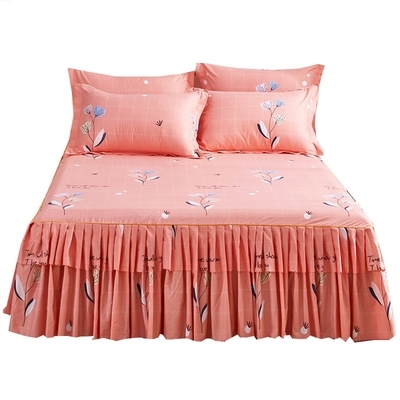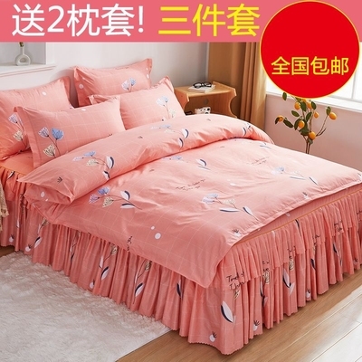 trong lưới màu đỏ cotton ba mảnh cotton phong cách công chúa đơn đôi chăn ga trải giường váy bộ đồ giường cô gái - Váy Petti