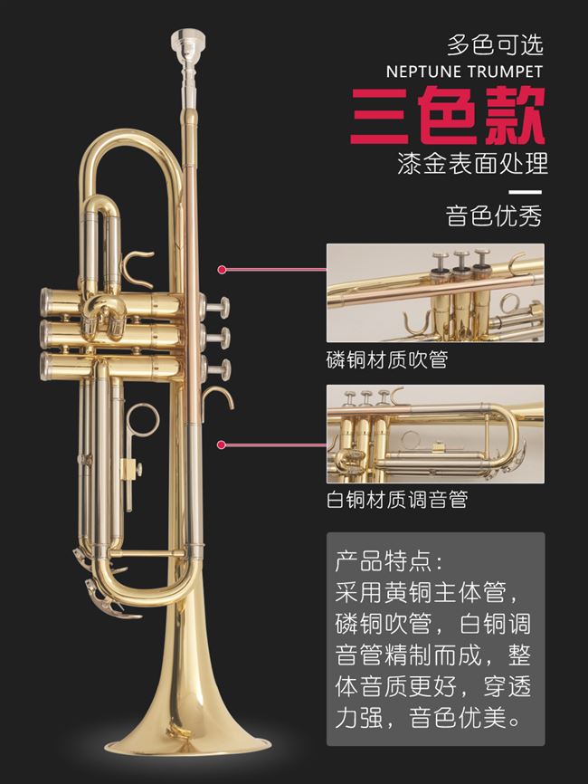 Trumpet nhạc cụ B-phẳng ba giai điệu người mới bắt đầu chơi kiểm tra ban nhạc chuyên nghiệp giảng dạy nhà thờ nhạc cụ phương Tây - Nhạc cụ phương Tây