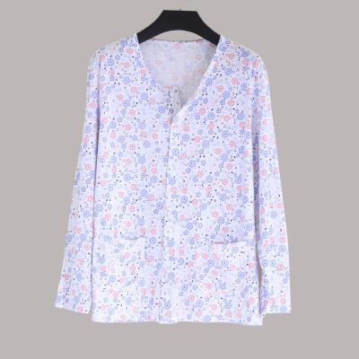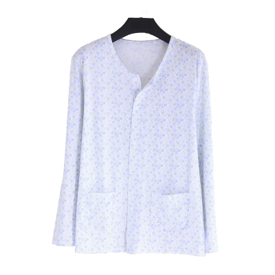 Trung niên và cao tuổi. Bộ đồ ngủ cotton cardigan của phụ nữ mỏng phần dưới đồ lót áo sơ mi có nút áo một mảnh quần áo mùa thu - Pyjama