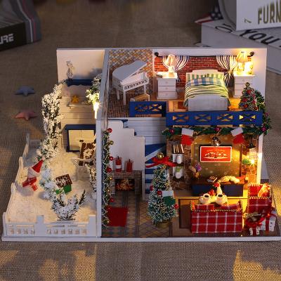 Tự làm nhà nhỏ màu xanh Giáng sinh làm thủ công mô hình nhà nhỏ lắp ráp biệt thự sáng tạo món quà Giáng sinh nữ - Chế độ tĩnh