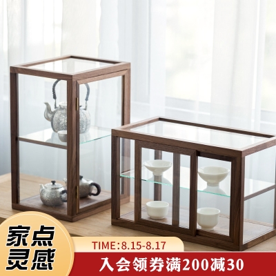 Tủ lưu trữ bằng kính óc chó màu đen khung gỗ chắc chắn trưng bày bộ sưu tập đồ gia dụng Nhật Bản Bộ đồ trà thủ công - Kính
