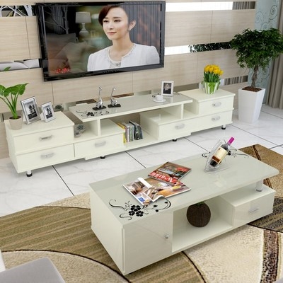 Tủ tivi kính cường lực phòng khách bàn cafe kết hợp tủ tivi ống lồng hiện đại đơn giản tủ đồ sàn nhà chung cư nhỏ - Bộ đồ nội thất