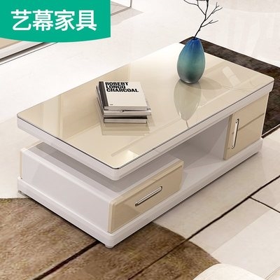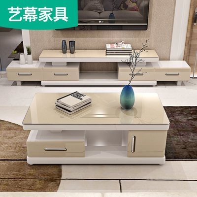 Tủ tivi kính cường lực sơn màu hiện đại và đơn giản bàn cafe bộ bàn ghế phòng khách chung cư nhỏ - Bộ đồ nội thất