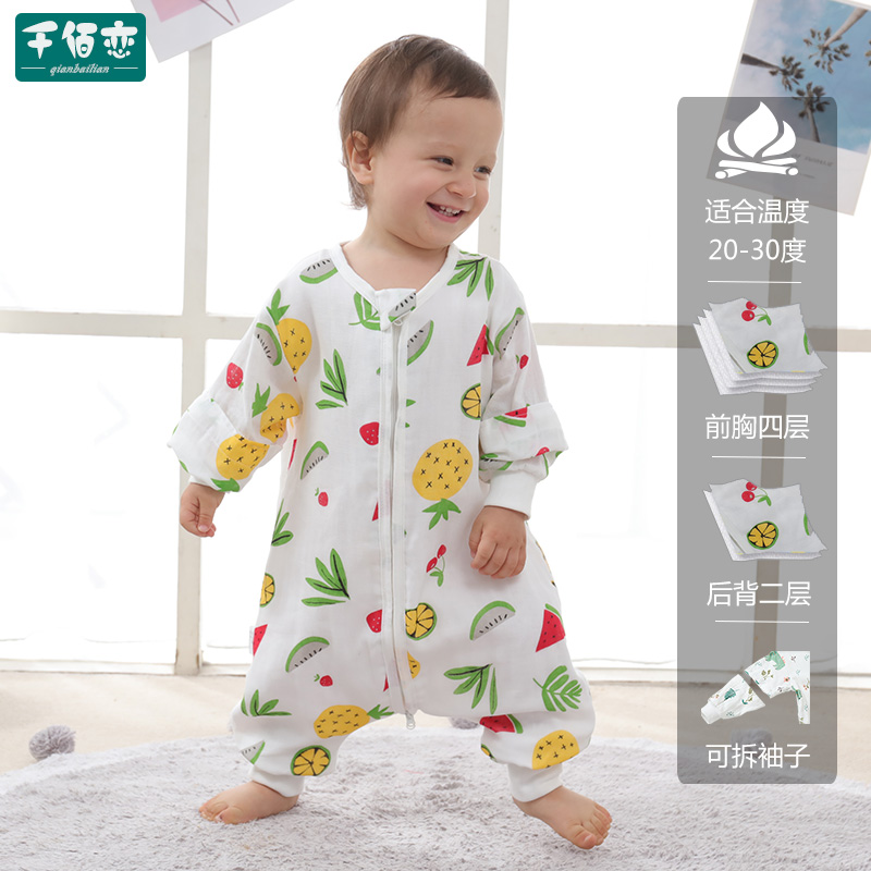 Túi ngủ cho bé Mùa hè Mỏng sơ sinh Mặt trước 4 Lưng 2 lớp Bông Gạc trẻ em Tách chân Túi ngủ cho bé Chăn chống đá - Túi ngủ / Mat / Gối / Ded stuff