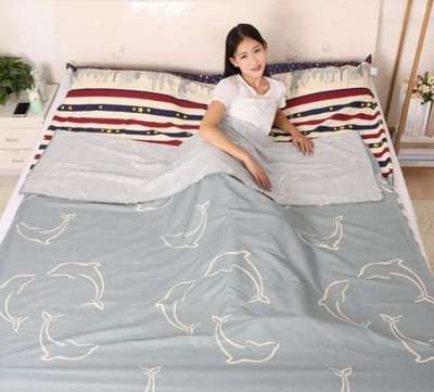 Túi ngủ cotton mỏng siêu nhẹ di động cho hai người mùa thu đông tấm mỏng sống trong khách sạn sợi bông điều hòa người lớn - Túi ngủ