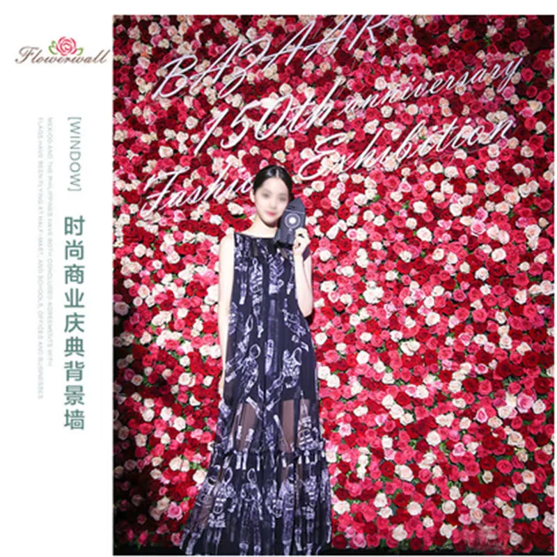 Tường hoa nhân tạo tùy chỉnh mạng lưới tường màu đỏ nền tường hoa giả tường trang trí nội thất trang trí nội thất lễ kỷ niệm lễ cưới hoa hồng sáng tạo tường - Hoa nhân tạo / Cây / Trái cây