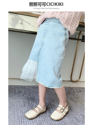 Váy cô gái 2020 mới mùa xuân phương tây thời trang không đều váy denim phong cách Hàn Quốc váy cô gái nhỏ - Váy