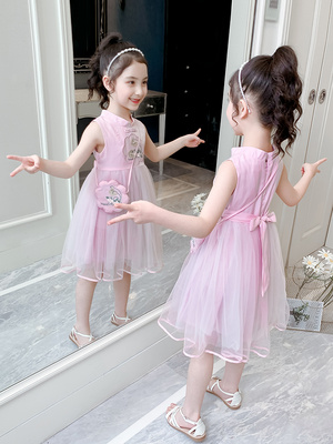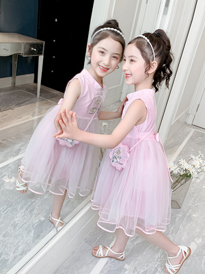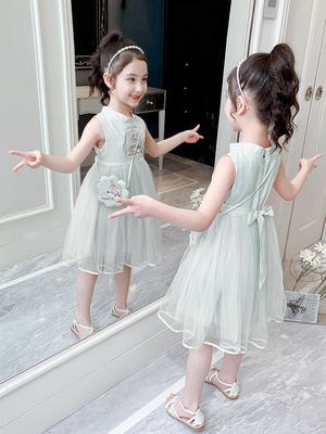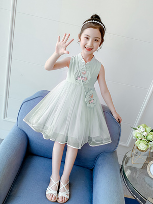 Váy cô gái mùa hè 2020 phong cách Trung Quốc mới Váy Hanfu Cô gái phong cách phương Tây váy lưới váy trẻ em váy vest - Váy