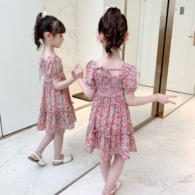 Váy cô gái mùa hè 2020 váy mới trẻ em váy hoa cô gái nhỏ mùa hè phong cách phương tây váy công chúa màu đỏ lưới - Váy