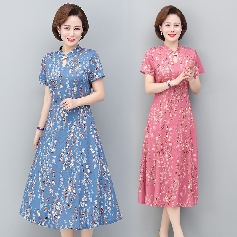 Váy mùa hè cho mẹ 50 tuổi quý cô trung niên váy mỏng sườn xám 2020 mới váy nữ mỏng - Phụ nữ cao cấp