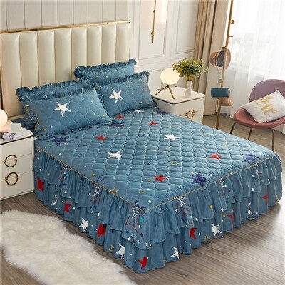 Váy ngủ chần bông dày, ga trải giường một mảnh công chúa, bộ ba mảnh, bộ đôi ấm áp mùa thu và mùa đông, ga trải giường chống trượt, tấm phủ chống bụi - Váy Petti