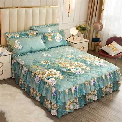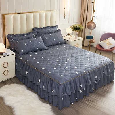 Váy ngủ chần bông dày, ga trải giường một mảnh công chúa, bộ ba mảnh, cotton giữ ấm thu đông, ga trải giường chống trượt, vỏ bọc chống bụi - Váy Petti