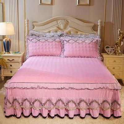 Váy ngủ chần bông phong cách châu Âu, ga trải giường ren công chúa Hàn Quốc một mảnh, ga trải giường dày ba mảnh Simmons bảo vệ - Váy Petti