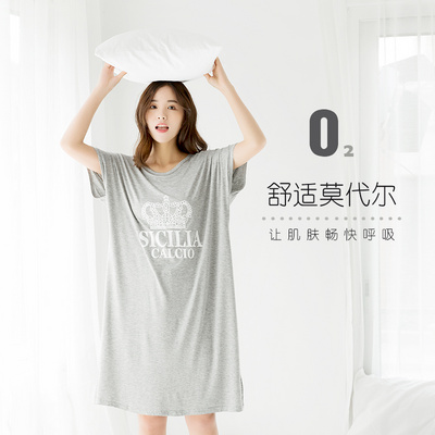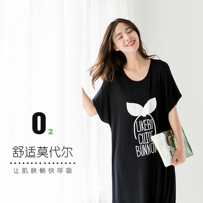 Váy ngủ nữ mùa hè chiều dài trung bình Phương thức váy ngủ không tay rộng rãi cộng với kích thước mập mm nửa tay áo pyjama dịch vụ nhà hộ sinh - Đêm đầm