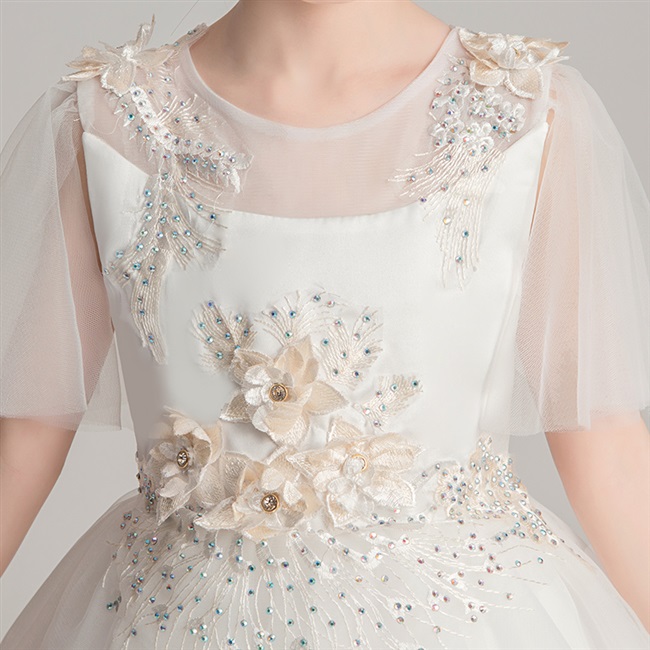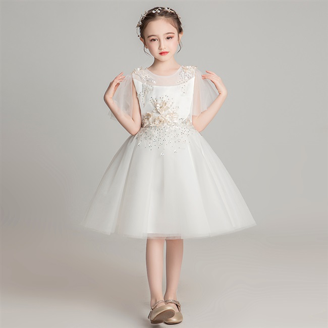 Váy trẻ em sinh nhật váy công chúa váy trắng cô gái trang phục trẻ em chủ nhà sợi bông cô gái váy cưới phong cách phương tây - Váy trẻ em