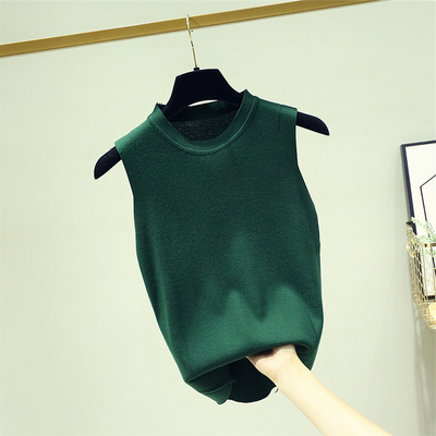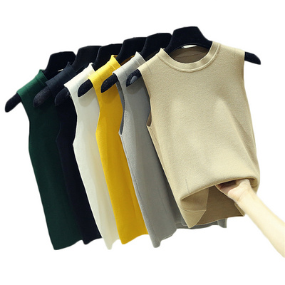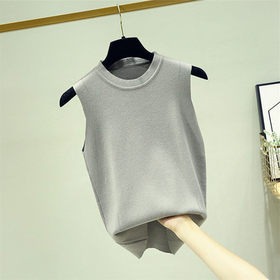 Váy yếm nữ cổ tròn dệt kim mùa hè với một phần ngắn của đầu mùa thu phiên bản mới của Hàn Quốc của áo sơ mi dưới cùng không tay - Áo vest