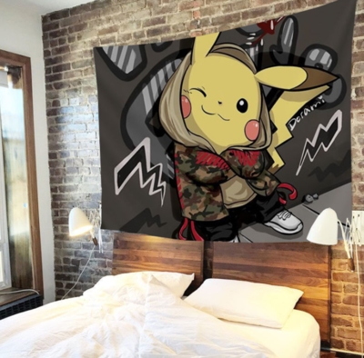 Velcro Pikachu nổ dễ thương đầu giường phòng ngủ nền vải che tường trang trí thảm trang trí ký túc xá Nhật Bản áp phích treo vải - Tapestry