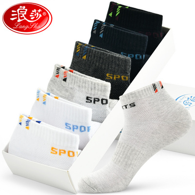 Vớ Langsha nam vớ mùa hè thoáng khí ống giữa cotton khử mùi mùa hè lưới thể thao nam mỏng - Vớ bông