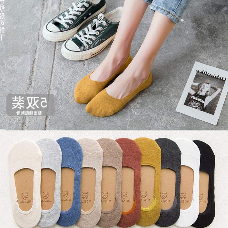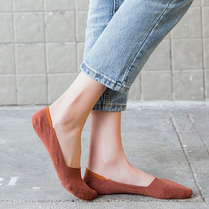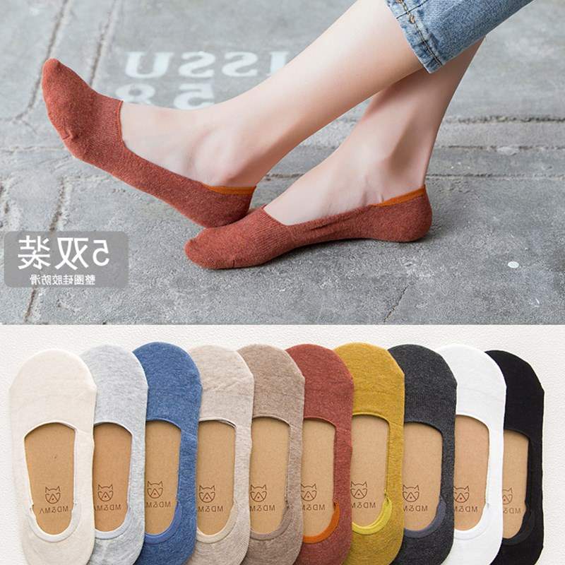 Vớ thuyền phụ nữ bông tinh khiết nông miệng vớ vô hình phụ nữ vớ chân silicone chống trượt vớ phụ nữ mùa hè tất mỏng cắt thấp - Bít tất nữ