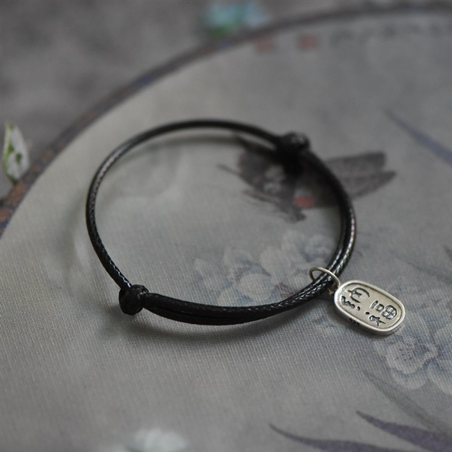 Vòng tay dây da May mắn tài lộc và may mắn Vòng chân đôi bạc Qixi Ngày lễ tình nhân quà tặng mặc định giao hàng - Vòng chân
